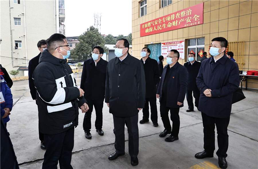在慈利縣金榮慈利科創產業園,毛偉明一行走進熱火朝天的項目施工現場,了解園區規劃建設情況。看到項目施工緊張有序、一期主體工程接近完工時,毛偉明叮囑當地負責同志要抓住當前有利施工條件,嚴格現場管理、堅持文明施工,在確保安全和質量的前提下,推動項目早建成、早投產。來到三峽天然氣有限公司慈利加氣站,毛偉明一行實地檢查消防器材、報警裝置等設備,詳細詢問燃氣輸配送、應急救援演練等情況。他強調,燃氣安全事關千家萬戶,要深刻吸取有關事故教訓,落實落細各方責任,全面排查整治燃氣管網和各類燃氣安全隱患,提高燃氣本質安全水平。