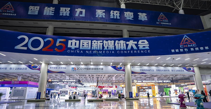 11月11日,湖南國際會展中心(芒果館),工作人員正在布展。2025中國新媒體技術展11月12日至14日在長沙舉辦。本次技術展以“數(shù)智新媒 跨界智聯(lián)”為主題。湖南日報全媒體記者 童臻熙 攝