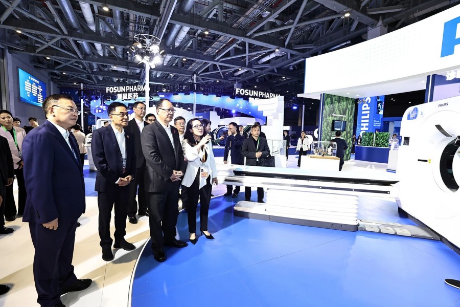 在醫療器械及醫藥保健展區,毛偉明一行先后參觀了飛利浦、諾和諾德、諾華、拜耳等企業展臺,了解新技術、新產品、新服務,現場推介湖南投資機遇。他說,生物醫藥與醫療器械產業是湖南13條重點推進產業鏈之一。誠邀大家來湘共促技術變革、共拓產業空間,與湖南高質量發展同頻共振、在未來賽道攜手奔跑。