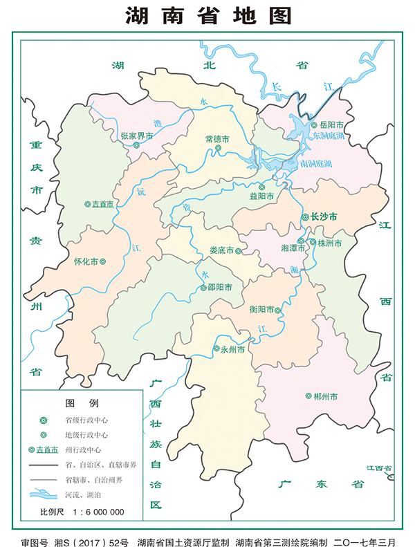 生態環境。湖南位于北緯25°-30°之間,屬亞熱帶季風濕潤氣候,年平均氣溫16-18℃,年平均降水量1200-1800毫米,具有“氣候濕潤、四季分明,熱量充足、雨量集中,春溫多變、夏秋多旱,嚴寒期短、暑熱期長”的特點。湖南山清水秀,河網密布,水系發達,5公里以上的河流有5341條,淡水面積達1.35萬平方公里,洞庭湖是全國第二大淡水湖,湘江、資水、沅水和澧水等四大水系覆蓋全省,其中湘江是長江七大支流之一,全省天然水資源總量為南方九省之冠。湖南屬亞熱帶常綠闊葉林帶,植被豐茂,四季常青。省級以上自然保護區53個,面積90.6萬公頃。其中,國家級23個,省級30個。世界地質公園2個,國家地質公園14個。全年完成造林面積44.1萬公頃。