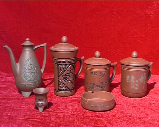 經(jīng)專家簽定,龍山紫砂陶,與在國際上聲譽(yù)很高的宜興紫砂陶含量一致,有極為珍貴的價(jià)值。1992年,陶瓷廠李云彬先生在保持陶瓷的原生性的基礎(chǔ)上,采用繪畫、雕刻等手法,集民族文化為一體的特色,研制創(chuàng)作了紫砂陶器《土家風(fēng)情尊》、《八頭茶具》、《紫砂茶水桶》3件作品,榮獲了湖南省輕工優(yōu)秀四新產(chǎn)品一等獎(jiǎng)。