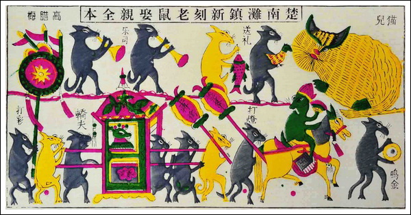 傳統的灘頭年畫,題材主要來自民間,特別是民間的傳說和故事。它的形式也盡力貼近民間,適應百姓的需要,什么中堂、斗方、屏條等形式應有盡有,全張、托半、托二、托四等規格一應俱全。人們把民間美術的美學結構定格為意象美結構,并把它的對應程式體系歸納為祝福祥、鎮妖辟邪、愛情婚姻、家庭繁衍、神人圣賢五大類。灘頭年畫可謂品類齊全;祝福祈祥類有《龍鳳呈祥》、《和氣致祥》等;鎮妖辟邪有《關羽馬超》、《秦瓊敬德》等;婚姻愛情類有《西湖借傘》、《老鼠娶親》等;家庭繁衍類有《麒麟送子》、《榴開百子》等;神靈圣賢類有《桃園結義》等。在藝術風格上,如果說楊柳青年畫有文人畫影響,桃花塢年畫略占有西洋畫風的話,那么,灘頭年畫卻一直保留著原有的風味:構圖簡潔,鄉土氣息濃郁,形成具有湖湘文化特色的獨有風格。