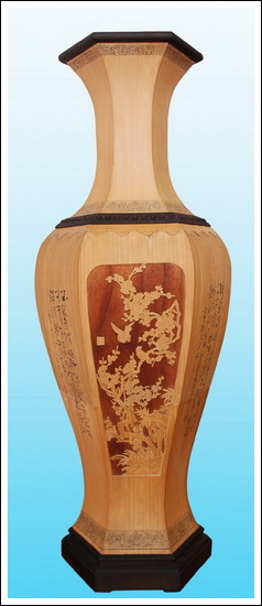一件翻簧竹刻品的制作,既要有高超的造型技巧,又要有嚴謹的畫面設計,還要有嫻熟的雕刻技巧,三者的和諧統一構成邵陽翻簧竹刻的整體藝術特色。其中以雕刻技巧尤為重要,其技法有線刻、浮雕、沉雕、陰文雕、陽文雕、彩色雕、鏤空、電繪、壓燙、腐蝕、鑲嵌等多種,而以陰文素雕最具特色。藝人們借鑒中國畫的白描技法,以刀代筆,刻線作畫,運用多種刀法,使畫面疏密相間,虛實相生,形成一種獨特風格。產品以盒、瓶、屏風、相架為主,兼及盤、碟、筒、架、大型掛屏和其他裝飾品,約有百余種。圖像多為蘭竹花卉、鳥獸蟲魚、仕女人物、山川勝跡等。由于成功地將傳統國畫和金石技法移植到竹刻上,作品工藝精巧,風格典雅,清麗明快,很有東方藝術特色,因而深受國內外人們的歡迎,產品遠銷日本和歐美70多個國家和地區。1915年在巴拿馬萬國博覽會上,邵陽竹刻荷葉花瓶曾獲得銀牌獎。