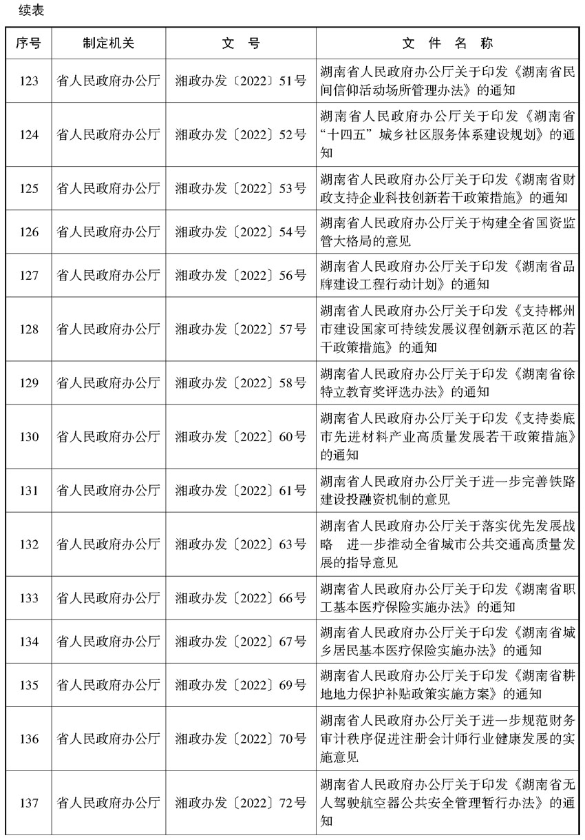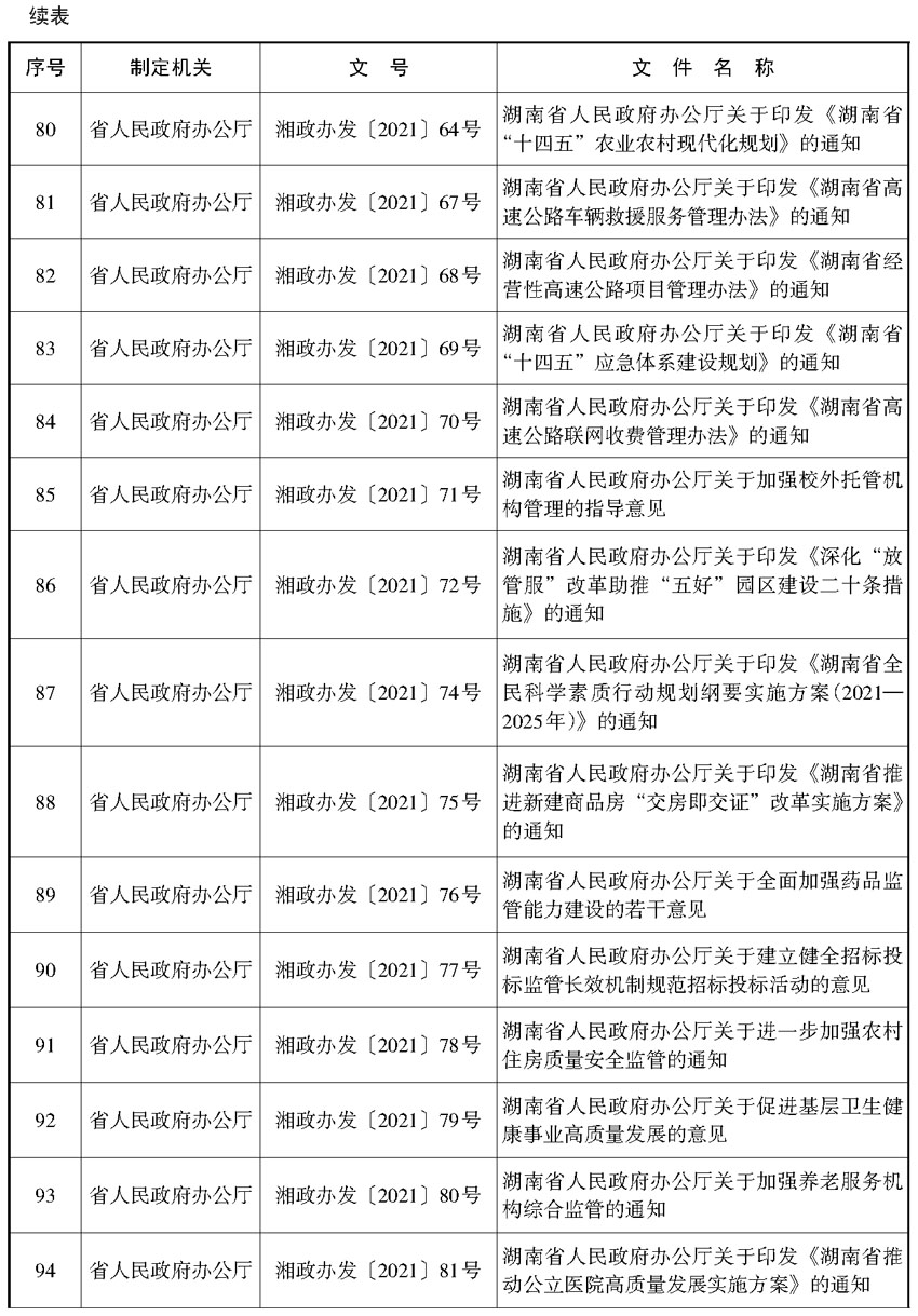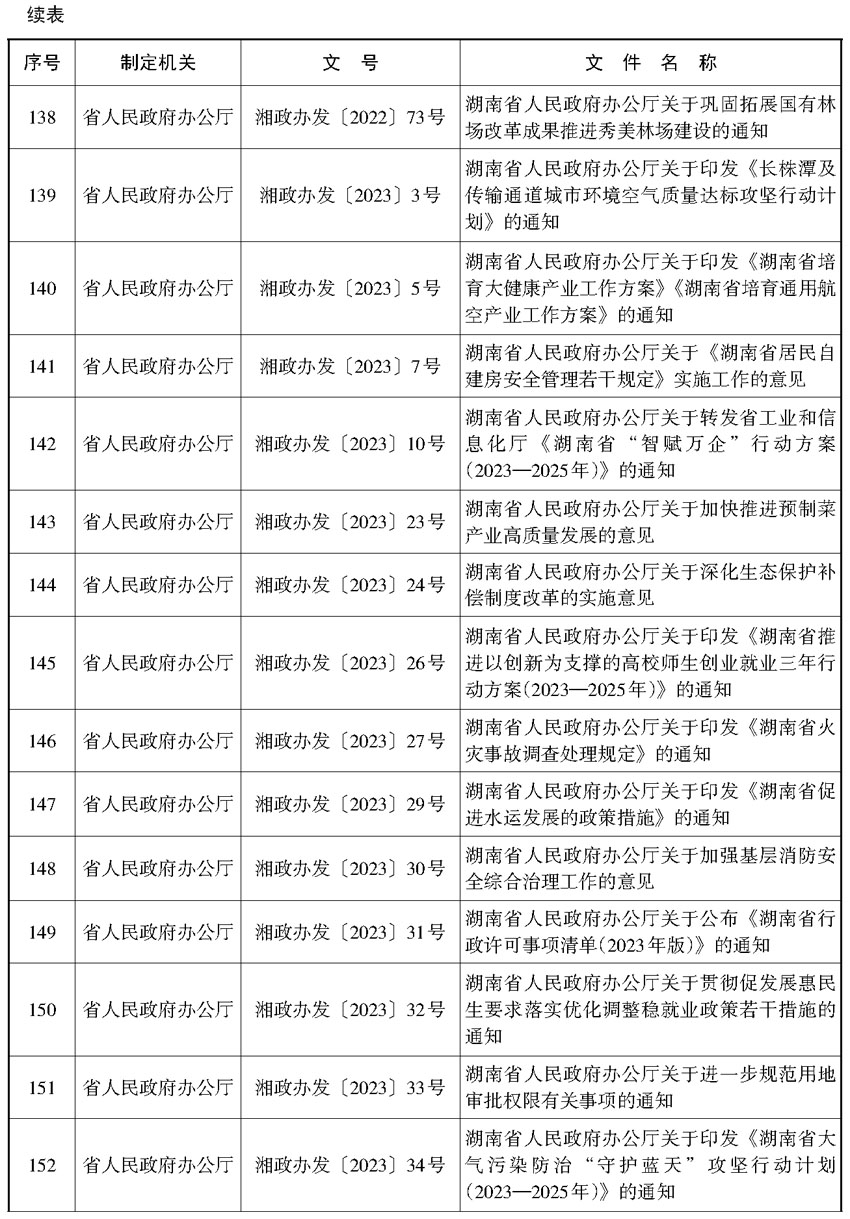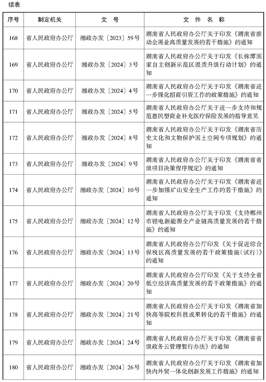 為加快建設法治政府,維護省政府行政規范性文件的權威性和嚴肅性,根據《湖南省行政程序規定》和《湖南省規范性文件管理辦法》等規定,省政府對2025年2月28日前以省政府和省政府辦公廳名義制發的現行有效的規范性文件進行了全面清理。現決定將清理結果公布如下: