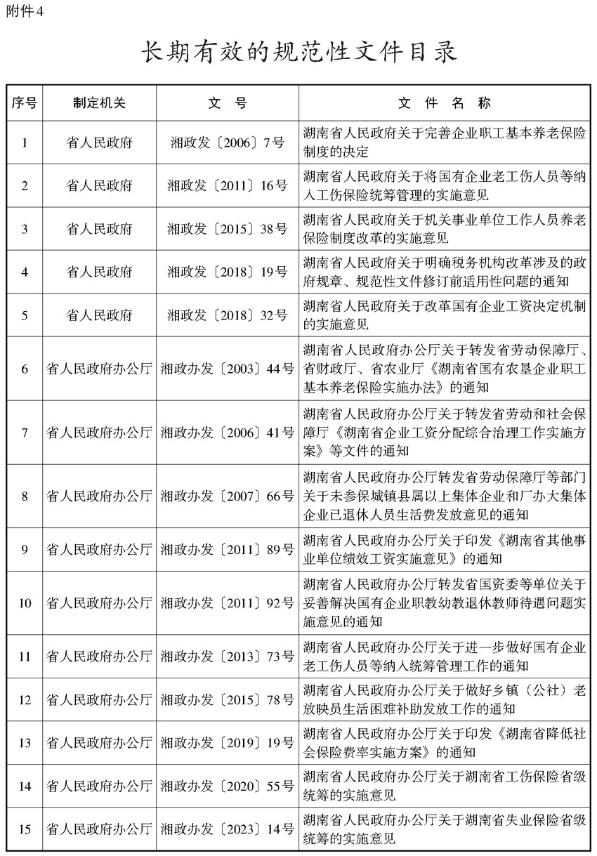 四、《湖南省人民政府關于完善企業職工基本養老保險制度的決定》(湘政發〔2006〕7號)等15件規范性文件長期有效。