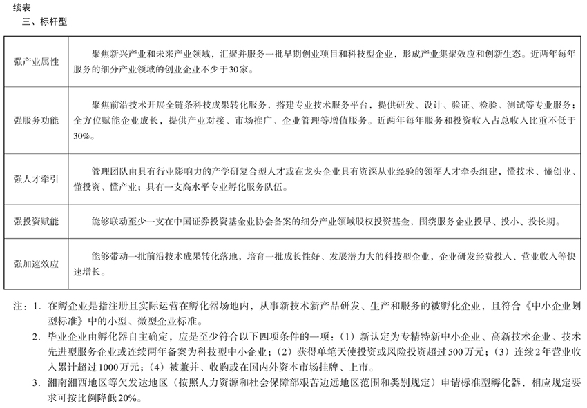 附件:湖南省科技型企業孵化器分類型認定標準