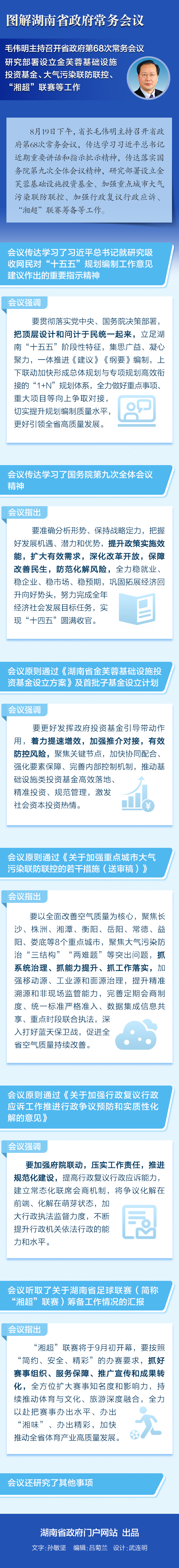 【圖解】8月19日省政府常務會議:研究設立金芙蓉基礎設施投資基金、大氣污染聯防聯控、“湘超”聯賽等
