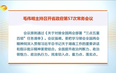 3月17日下午,省長毛偉明主持召開省政府第57次常務(wù)會議,傳達學習習近平總書記在全國兩會期間的重要講話和全國兩會精神,研究部署“三點五重百項”任務(wù)清單、提振消費、金芙蓉子基金設(shè)立、長株潭生態(tài)綠心保護、信訪工作、健全基本醫(yī)保參保長效機制等。[詳細內(nèi)容]