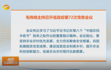 9月29日下午,省長毛偉明主持召開省政府第72次常務會議,傳達學習習近平總書記近期重要講話和指示批示精神,傳達學習中共中央政治局常委、國務院副總理丁薛祥來湘調研并在第四屆北斗規模應用國際峰會上的講話和指示要求,研究部署“人工智能+”行動、新型儲能發展、土...[詳細內容]