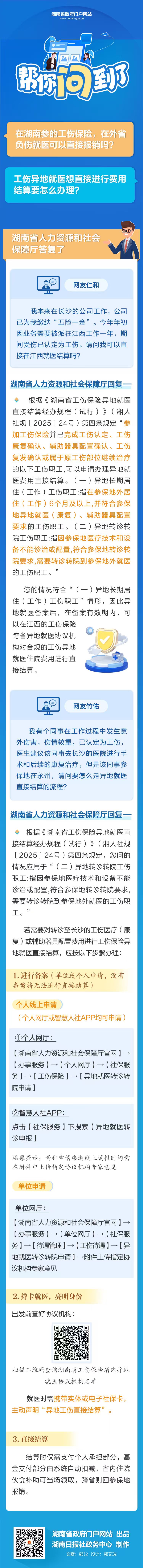 在湖南參的工傷保險,在外省負傷就醫可以直接結算嗎?幫你問到了!