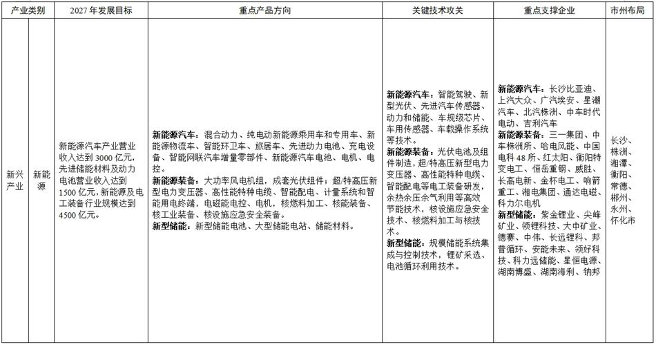 1.新能源汽車。加快長沙比亞迪、北汽株洲、廣汽埃安、上汽大眾、吉利商用車等新能源整車項目達產,推動燃油汽車產能轉型和閑置產能利用,擴大我省新能源整車規模優勢。圍繞新能源汽車“三電”,加大長沙、湘潭等省級汽車配套產業園發展,推進比亞迪零部件、中車時代電氣電驅系統、博世新能源汽車電控等項目建設,爭取頭部企業在湘布局擴能動力電池。支持希迪智駕、納雷科技、舍弗勒、景嘉微、國科微、轂梁微等企業加快發展自動駕駛系統、毫米波雷達、線控底盤、汽車芯片等智能網聯汽車增量零部件。加快智慧充電樁、停車場建設。