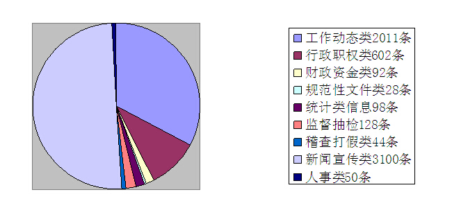 1.信息公開總體數量。2015年省食藥監局主動公開食品藥品監管各類信息6358條,比2014年增長26%。按信息類別分,工作動態類信息2011條,行政職權類信息602條,財政經濟類信息92條,規范性文件及政策解讀類信息28條,規劃計劃類信息13條,人事類信息50條,統計類信息98條,建議提案類信息8條,稽查打假類信息44條,食品安全警示、食品藥品抽檢監測、黨風廉政建設等專題專欄信息128條,新聞宣傳類信息3100多條。(如下圖所示)