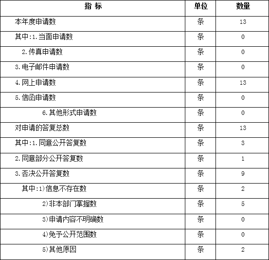 2016年,省統計局收到依申請公開網上申請數13件,已主動公開答復1件,同意公開答復2件,同意部分公開答復1件,因涉及個人隱私不同意公開答復9件。