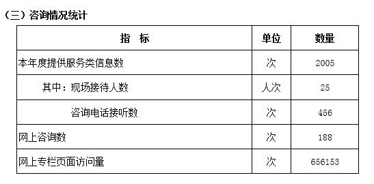 7.依法依規(guī)辦理申請公開。結(jié)合統(tǒng)計工作實際,進一步完善依申請公開工作流程,積極推動網(wǎng)上辦理依申請公開,修訂公開指南中有關(guān)依申請公開的內(nèi)容,認真做好依申請公開政府統(tǒng)計信息內(nèi)容的合法性審查,做到及時接收、依規(guī)辦理、按時統(tǒng)一規(guī)范答復(fù),提高工作效率。暢通受理渠道,為申請人提供便捷服務(wù),提高答復(fù)工作質(zhì)量。2017年,我局處理依申請公開項目12項,省長信箱(公眾問答)信件2條,局長信箱、統(tǒng)計違法案件舉報、統(tǒng)計紀(jì)檢監(jiān)察舉報來信23條,咨詢投訴信息163條。