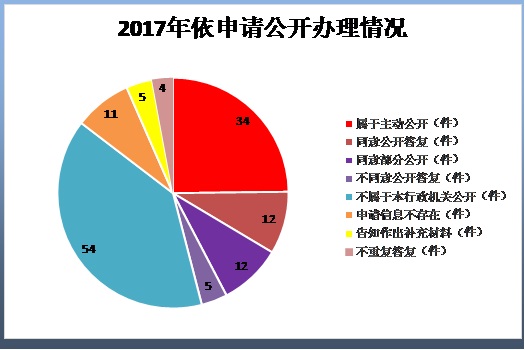 (二)辦理情況。2017年1月1日至12月31日,省食藥監局共受理公開政府信息申請125件,依法按程序辦結125件。根據《中華人民共和國政府信息公開條例》相關規定,在125件答復件中,屬于主動公開的34件,同意公開答復12件,不同意公開答復的5件(申請公開的信息不是《條例》所指的政府信息),不屬于本行政機關公開的54件,申請信息不存在的11件,告知作出補充材料的5件,不重復答復4件。按照申請人要求的形式回復分析,信函回復39件,網絡郵件回復32件,信函和網絡郵件同時回復52件,自行領取2件,分別占依申請公開總量31.2%、25.6%、41.6%、1.6%。