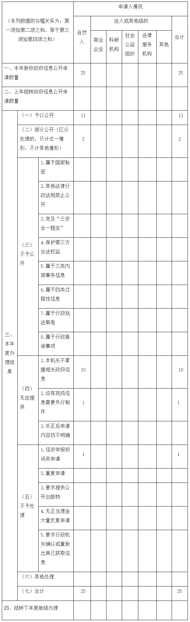 三、收到和處理政府信息公開申請情況