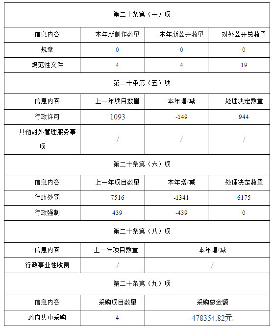 二是全面落實行政執法信息公開。積極推動“雙隨機、一公開”執法工作,按照“誰執法誰公示”要求,充分發揮行政許可和行政處罰“雙公示”系統作用,集中向社會公開執法職責、執法依據、執法程序和結果等信息。全年發布行政許可信息944條、行政處罰信息6175條。