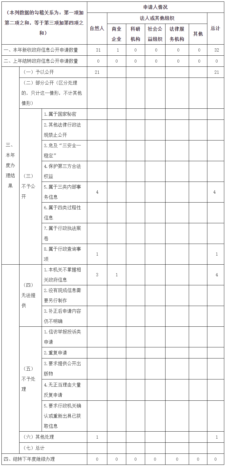 三、收到和處理政府信息公開申請情況