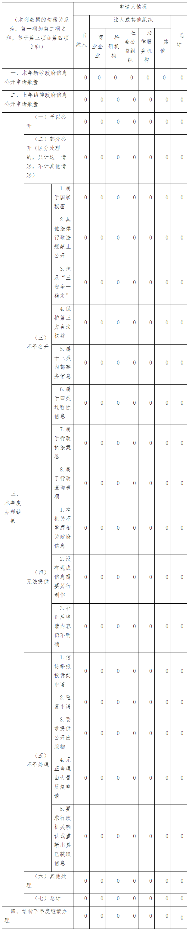 三、收到和處理政府信息公開申請情況