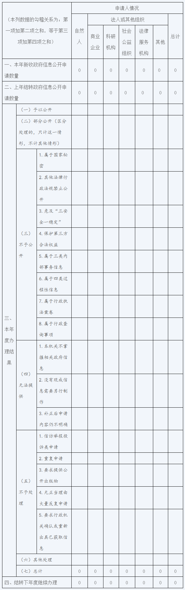 本年度報告根據(jù)《中華人民共和國政府信息公開條例》(國務(wù)院令第711號)和《湖南省實(shí)施〈中華人民共和國政府信息公開條例〉辦法》編制,由基本情況、主動公開政府信息情況、收到和處理政府信息公開申請情況、政府信息公開行政復(fù)議和行政訴訟情況、存在的主要問題及改進(jìn)情況五個部分組成。