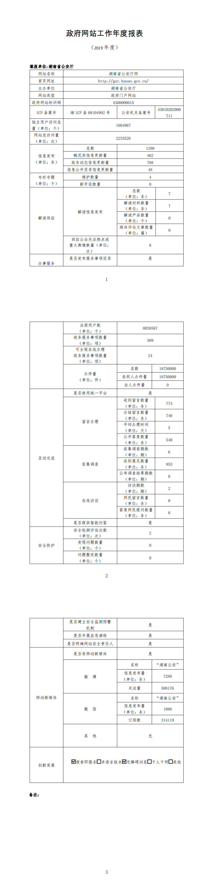 2019年湖南省公安廳網(wǎng)工作年度報(bào)表