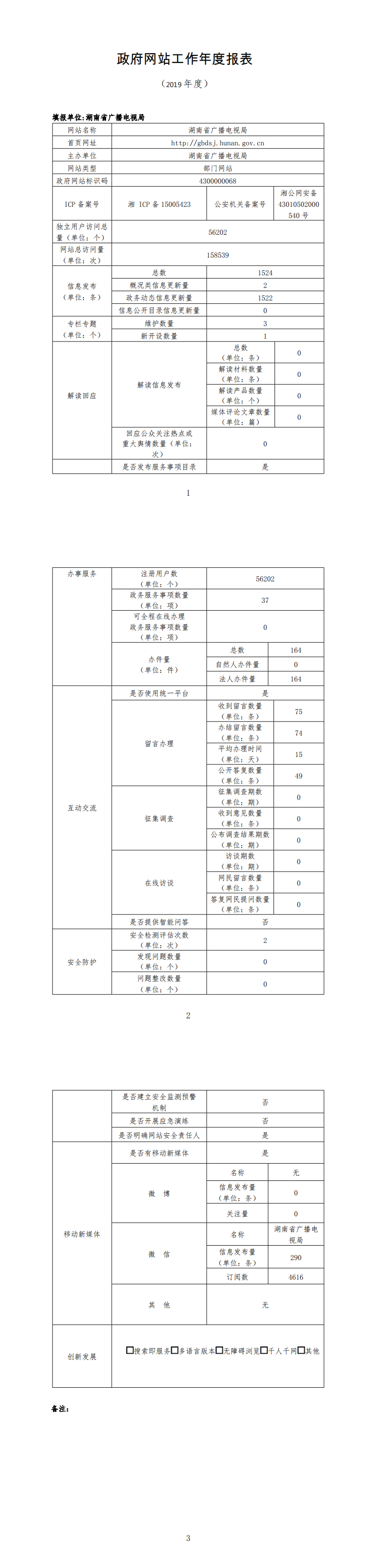 2019年湖南省廣播電視局網(wǎng)站工作年度報(bào)表