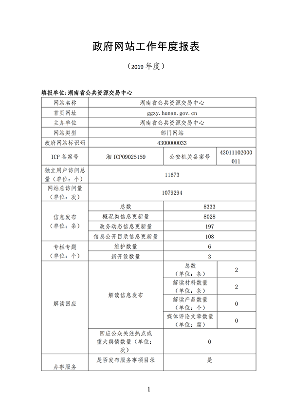 2019年湖南省公共資源交易中心網(wǎng)站工作年度報表