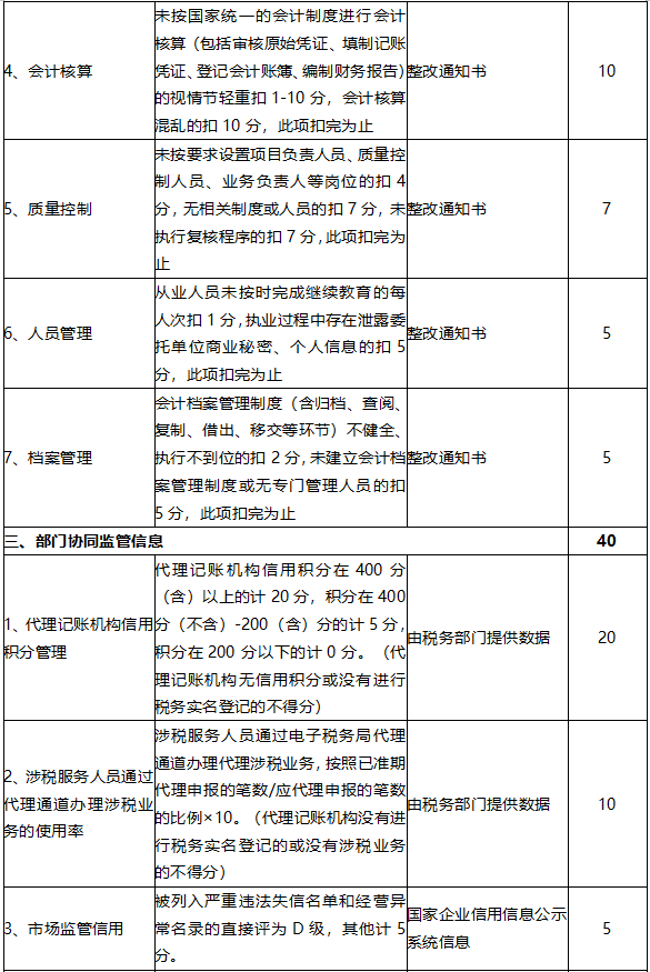 (三)部門協同監管信息:稅務部門、市場監管部門、發展改革部門對代理記賬機構信用評價信息。
