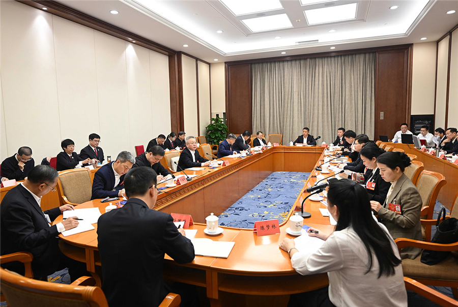 3月9日,湖南代表團(tuán)在駐地舉行分組會(huì)議。