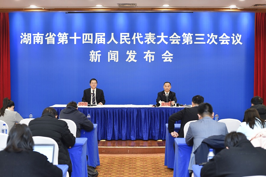 1月13日下午,湖南省十四屆人大三次會議舉行新聞發布會。省人大常委會副秘書長、省十四屆人大三次會議新聞發言人張揚軍發布新聞。