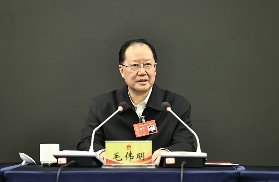 審議中,毛偉明和代表們一致認為,省人大常委會工作報告和省“兩院”工作報告堅持理論和實踐相結合、敘事和明理相結合、經驗和制度相結合,充分體現了堅持黨的領導、人民當家作主、依法治國有機統一,是高舉偉大旗幟、彰顯制度優勢、弘揚法治精神、飽含為民情懷的好報告,表示完全贊成。過去一年,省十四屆人大及其常委會從70年波瀾壯闊的人大歷史中汲取智慧力量,認真履行憲法法律賦予的職責,有效發展全過程人民民主,政治建設有力有效、服務發展有為有位、履職創新有章有法、代表工作有聲有色,有力支持了全省新質生產力培育、財政運行監管、美麗湖南建設、民生福祉改善和法治政府建設;省高院、省檢察院聚焦“國之大者”“省之大計”“民之關切”,堅持司法為民的政治擔當、法治擔當,有力護航高質量發展、保障群眾權益、推動環境治理、促進依法行政,讓公平正義更加可觸、可感、可及。