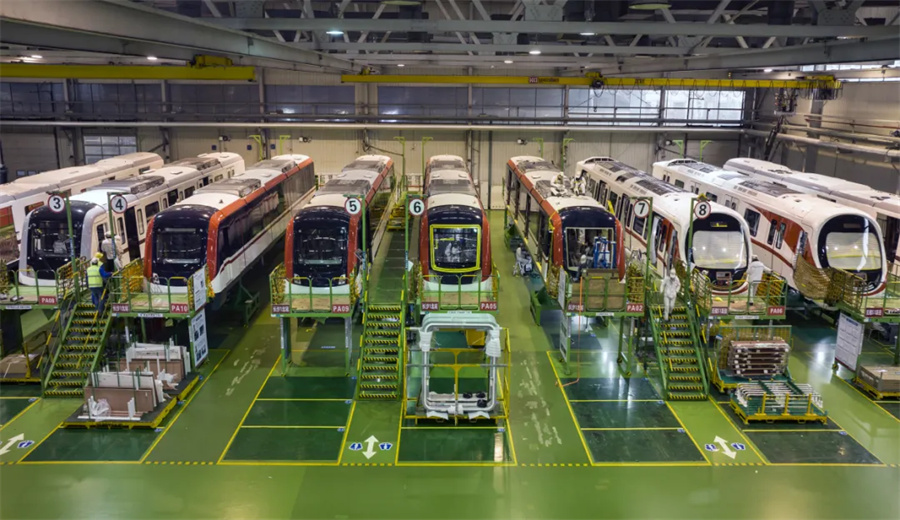 中車株洲電力機車有限公司城軌事業部總成車間,技術人員在加緊組裝城軌車輛,趕制國內外客戶訂單。