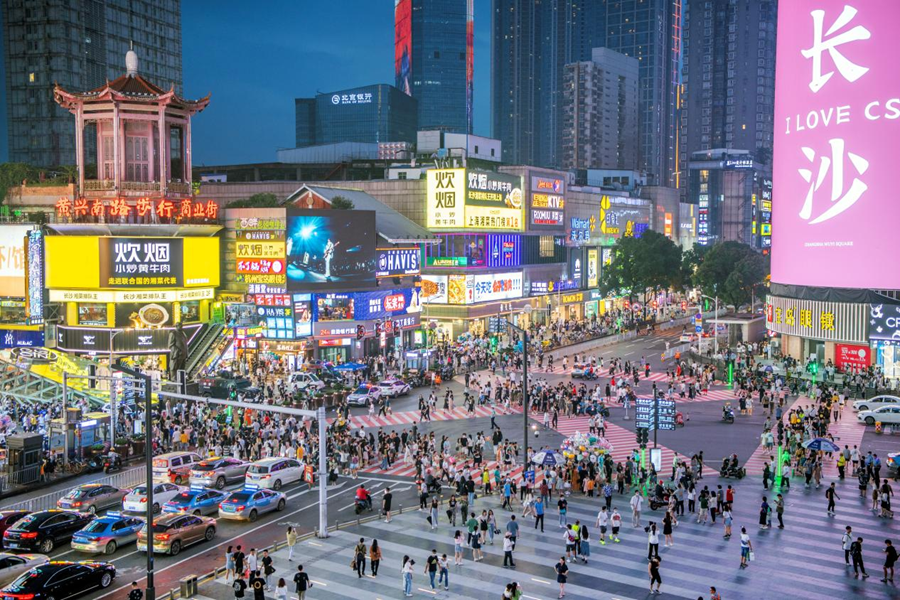 長沙市五一商圈人潮涌動,熱鬧非凡。
