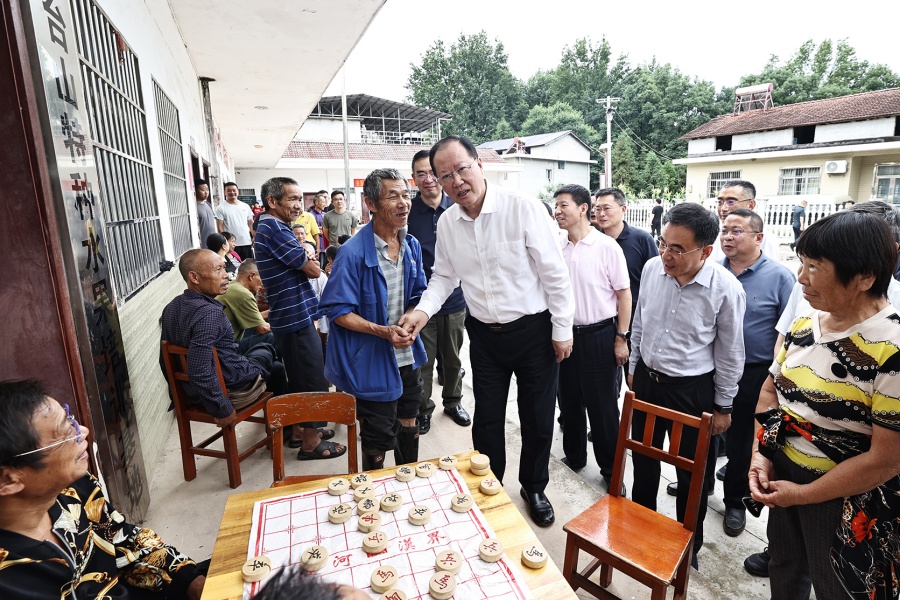 毛偉明在慈利縣云山村集中安置點(diǎn)慰問受災(zāi)群眾。