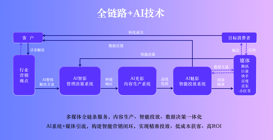項目背景。創研股份秉持“以技術驅動營銷”的理念,著力打造賦能企業增長的全鏈路AI營銷服務生態,通過自主研發的創影營銷應用大模型,以大數據、智能算法、AIGC、營銷自動化等技術,整合頭部媒體資源,為企業提供AI數字技術、AI數字運營、AI數字媒介產品服務矩陣,并著力面向電商、教育、快消等行業提供AI營銷整體解決方案,助力企業可持續增長。