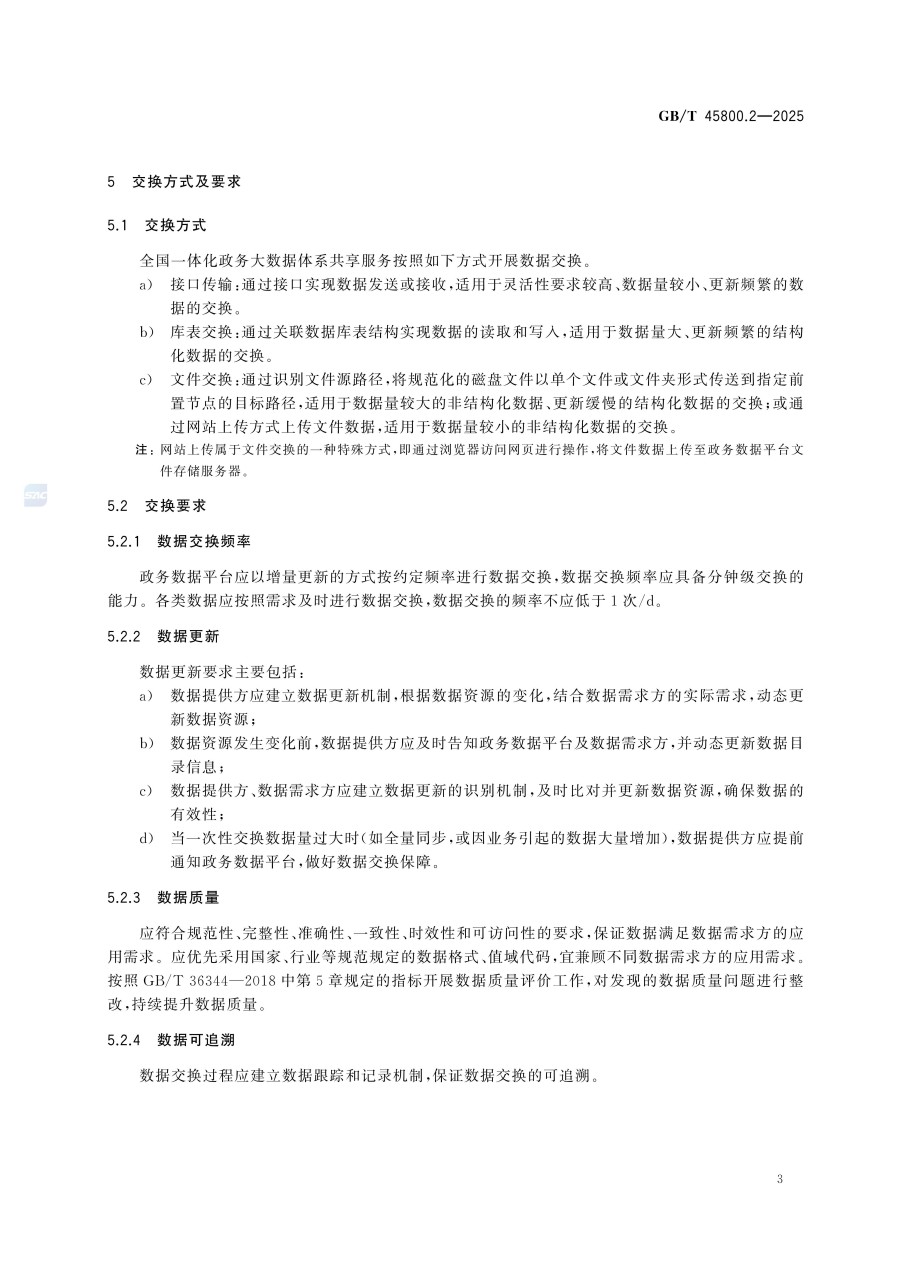 《全國一體化政務大數(shù)據(jù)體系 第2部分:數(shù)據(jù)共享交換要求》(GB/T 45800.2-2025)