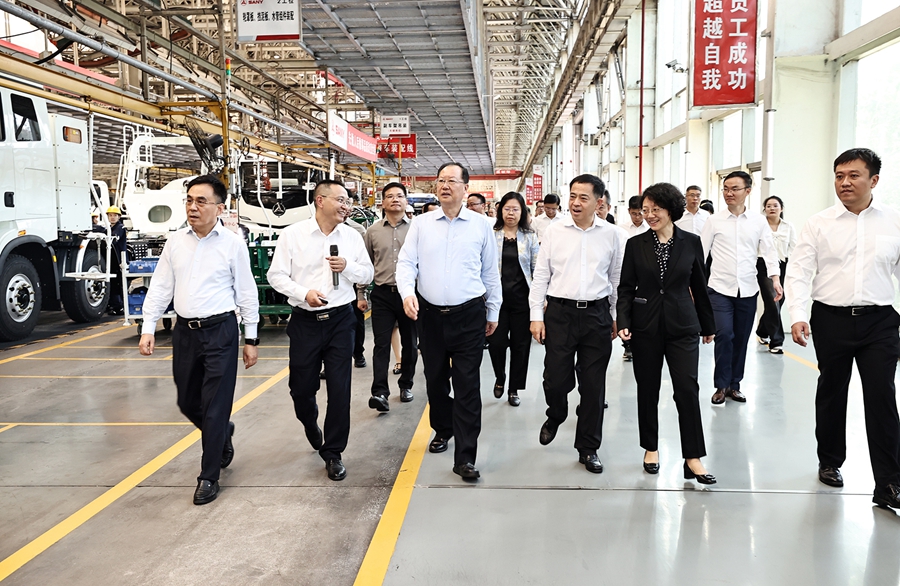 毛偉明一行走進邵陽經開區的湖南富蘭地工具公司,作為一家湘商回歸企業,公司通過數字化改造提升生產效率,可年產1800萬支精密切削刀具,獲評國家級專精特新“小巨人”企業。毛偉明為企業選擇湖南、快速成長感到高興,希望企業更加專注細分市場、專業分工,走“專精特新”發展之路,成長為行業“隱形冠軍”。要當好湘商回湘的“代言人”,積極開展以商招商、產業鏈招商,吸引更多上下游企業聚集。三一專汽公司是全球最大的工程攪拌車生產基地,連續5年產值破百億元,被評為國家制造業單項冠軍企業。毛偉明鼓勵企業充分發揮龍頭引領支撐作用,集聚先進要素、加強研發創新,進一步補鏈延鏈強鏈、做大產業規模,推動產業集群發展。