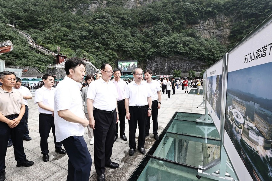 毛偉明在張家界市天門山景區(qū)調(diào)研。