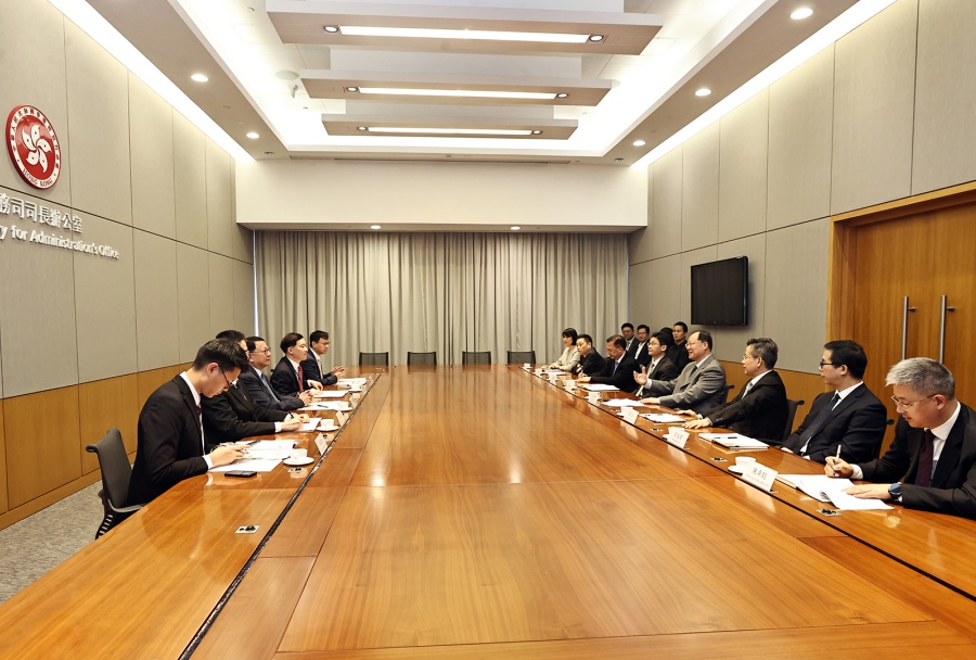 5月13日下午,毛偉明與香港署理行政長官陳國基座談。