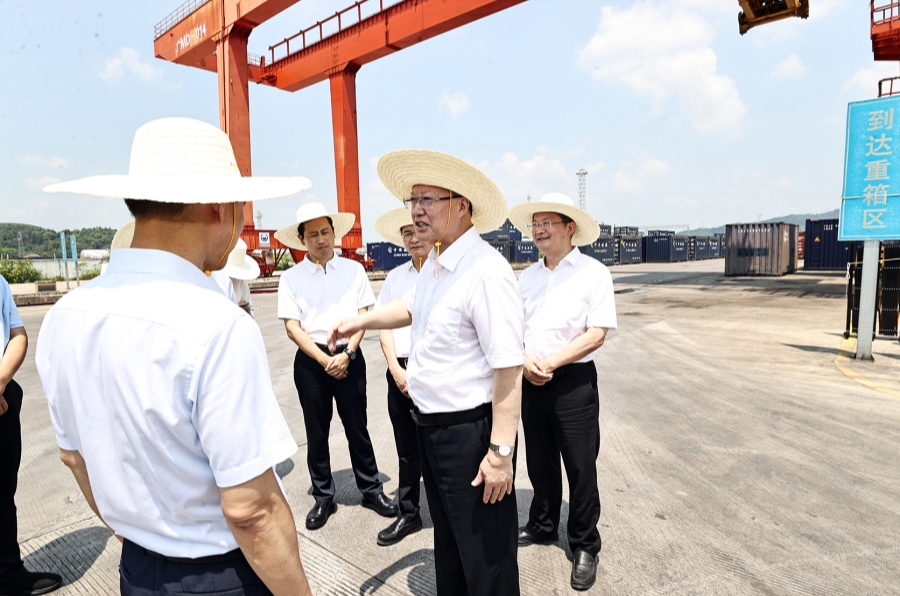 永州陸港項(xiàng)目規(guī)劃建設(shè)吞吐量超千萬(wàn)噸的港口,建成后將成為對(duì)接?xùn)|盟、非盟的區(qū)域性綜合物流樞紐。毛偉明一行查看了項(xiàng)目一期建設(shè)情況,強(qiáng)調(diào)要精準(zhǔn)把握流向、流量、流效,完善公共配套服務(wù),加快建設(shè)“公鐵河海”多式聯(lián)運(yùn)的集疏運(yùn)體系,持續(xù)降低社會(huì)物流成本。要放大集散地功能作用,不斷壯大臨港經(jīng)濟(jì)、通道經(jīng)濟(jì)、樞紐經(jīng)濟(jì),培育新增長(zhǎng)點(diǎn)。