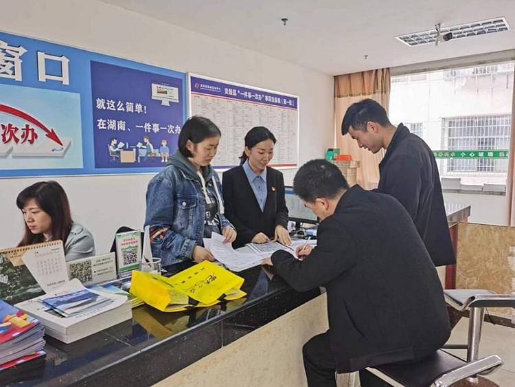 個體工商戶在株洲炎陵縣政務(wù)服務(wù)大廳“一件事一次辦”窗口辦理登記事項(xiàng)。