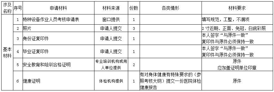 我局向岳陽市市場監督管理局申報以下特種設備作業人員證的申請:A3(鍋爐壓力容器壓力管道安全管理)、A4(電梯安全管理)、A5(起重機械安全管理)、A8(場(廠)內專用機動車輛安全管理)、G1(一級鍋爐司爐)、G2(二級鍋爐司爐)、G3(三級鍋爐司爐)、G4(一級鍋爐水質處理)、G5(二級鍋爐水質處理)、R1(固定式壓力容器操作)、R2(移動式壓力容器充裝)、P1(永久氣體氣瓶充裝)、P2(液化氣體氣瓶充裝)、P3(溶解乙炔氣瓶充裝)、P4(液化石油氣瓶充裝)、P5(車用氣瓶充裝)、D1(壓力管道巡檢維護)、T3(電梯司機)、Q3(起重機械指揮)、Q4(橋門式起重機司機)、Q5(塔式起重機司機)、Q6(門座式起重機司機)、Q7(纜索式起重機司機)、Q8(流動式起重機司機)、Q9(升降機司機)、Q10(機械式停車設備司機)、N2(叉車司機)、N4(內燃觀光車司機)、N5(蓄電池觀光車司機)、金屬焊接操作、非金屬焊接操作(金屬焊接操作和非金屬焊接操作人員代號按照《特種設備焊接操作人員考核細則》的規定執行)。