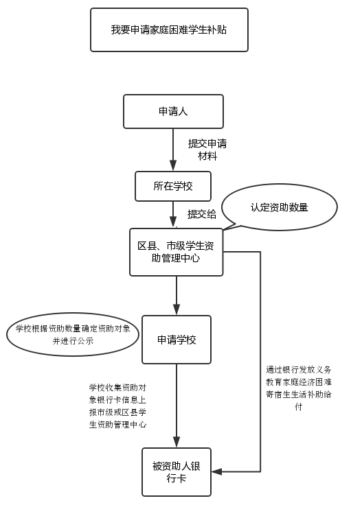 2、市級或區縣學生資助管理中心認定資助數量,學校根據資助數量確定資助對象并進行公示;(5個工作日)