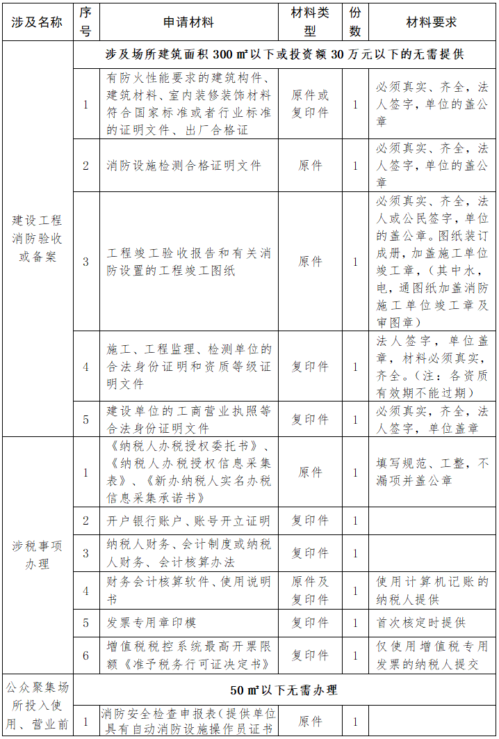 (四)建設工程竣工消防驗收或備案(備注:涉及場所建筑面積300㎡以下或投資額30萬元以下的無需辦理);
