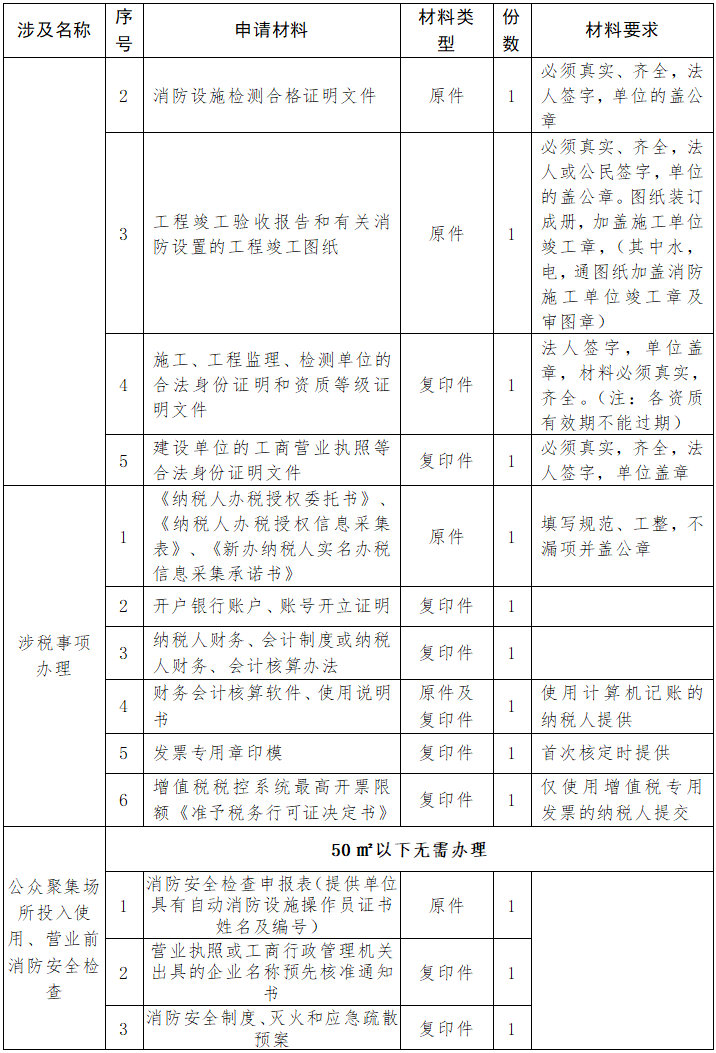 (三)建設工程竣工消防驗收或備案(備注:涉及場所建筑面積300㎡以下或投資額30萬元以下的無需辦理);