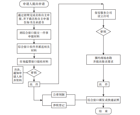 營業執照2 個工作日,保安服務公司設立許可18 個工作日,稅務事項辦理可即時辦結。不符合相關情形,或涉及增值稅專用發票 (增值稅稅控系統) 最高開票限額審批且最高開票限額十萬元以上的最多需要20 個工作日。