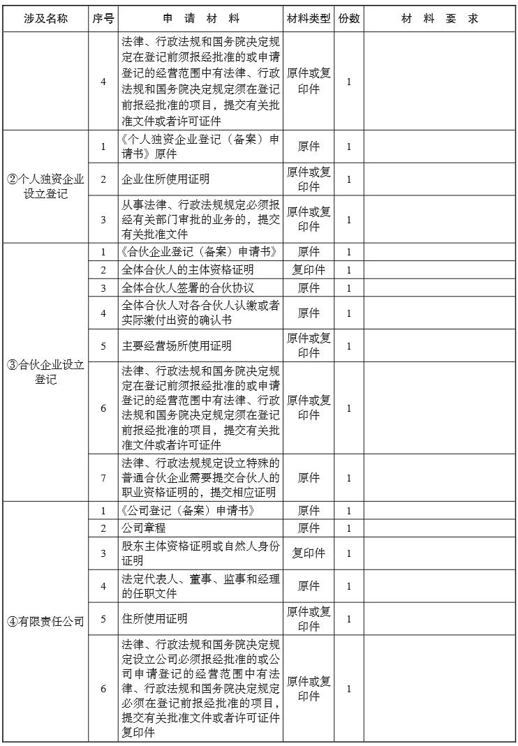(一) 市場(chǎng)主體設(shè)立登記;