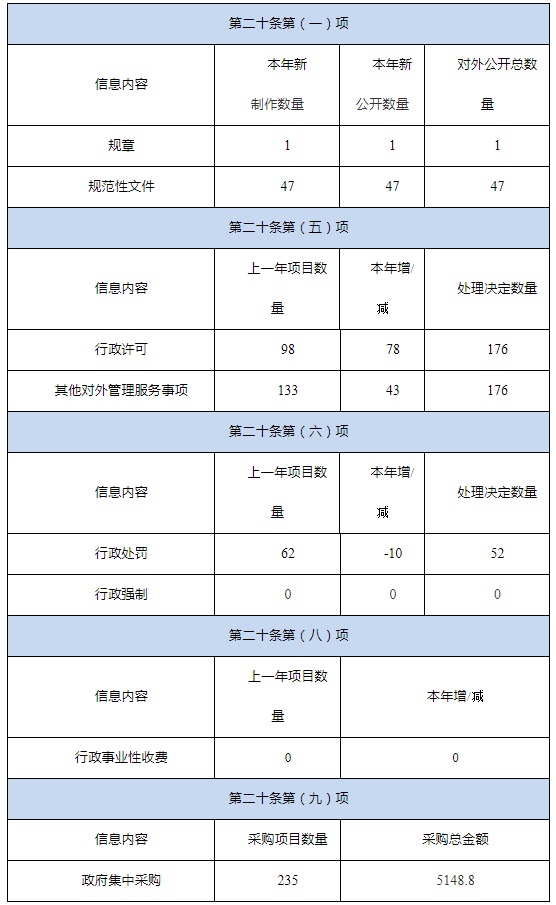 本年度報告根據《中華人民共和國政府信息公開條例》(國務院令第711號)(以下簡稱“條例”)編制,由總體情況、主動公開政府信息情況、收到和處理政府信息公開申請情況、政府信息公開行政復議和行政訴訟情況、存在的主要問題及改進情況、其他需要報告的事項六個部分組成。